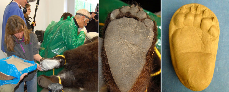Die Abdrücke stammen direkt vom Tier, von Präparaten oder Originalspuren in freier Natur. Bei fehlenden Tierarten in der Sammlung habe ich auch Prototypen nach anatomischen Vorgaben der Spezies modelliert, so z.B. den Fuß einer Säbelzahnkatze…